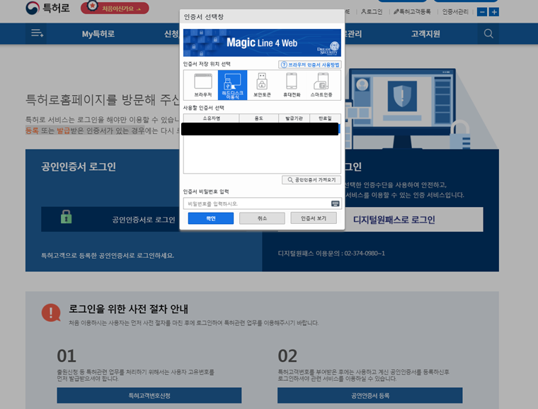 인증서 서명창이 나오면 서명하여 다음단계로 넘어갑니다.