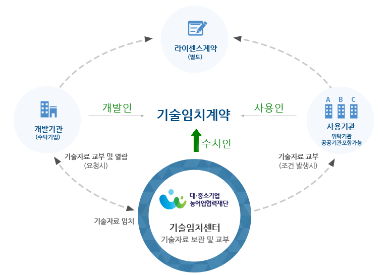 - 대 기 업 : 삼자간 계약 시 개발기업의 파산·폐업 등이 발생한 경우, 해당 임치물을 이용하여 납품 기술에 대한 지속적 사용 보장할 수 있습니다.