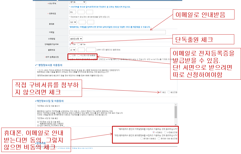 휴대폰, 이메일로 정보안내를 받기 싫다면 개인정보수집 및 이용동의를 하지 않으시면 됩니다.